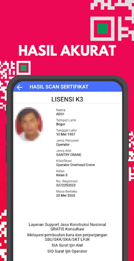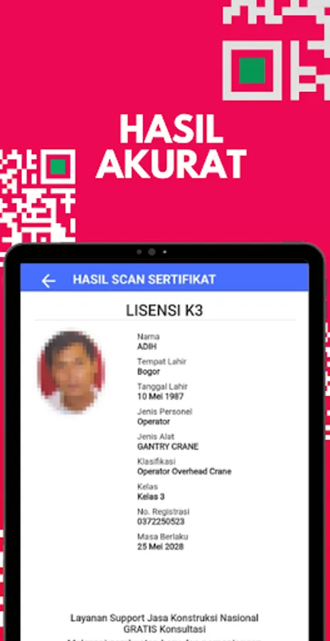 Simple and Fast: We have designed this app to make it as light as possible for you. Just open the application, then scan or scan the QR Code listed on your K3 license. The results will appear immediately, allowing you to quickly verify the validity of your K3 certificate.