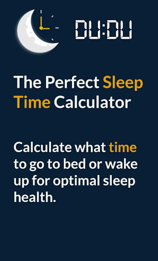 With Dudu: The perfect sleep time calculator in a few steps, you can calculate the right time for you to sleep or to wake up based on the latest recommendations ❤️.