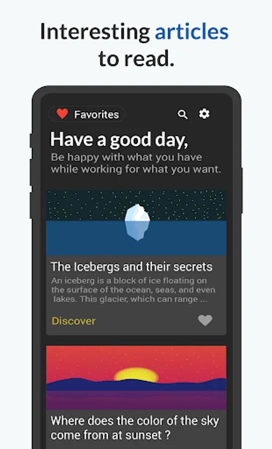 Our app provides a rich and motivating way to discover the secrets of the universe đ. We cover a wide range of topics, from the depths of the ocean to the far reaches of space đđĒ. And with our engaging illustrations and easy-to-read articles, you'll find yourself immersed in the wonders of the world.