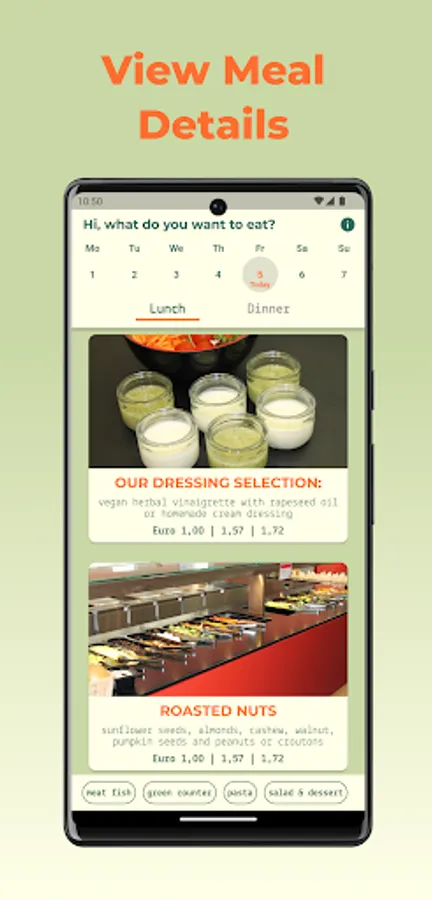 Do you ever wonder what's for lunch or dinner at Hochschule Fulda Mensa and waste time translating the menu? Our app has you covered! It displays a list of all the meals available at the Mensa for a specific date, so you can plan your meals in advance. Plus, it's designed for internationals, too! Download it now and start exploring the menu today!