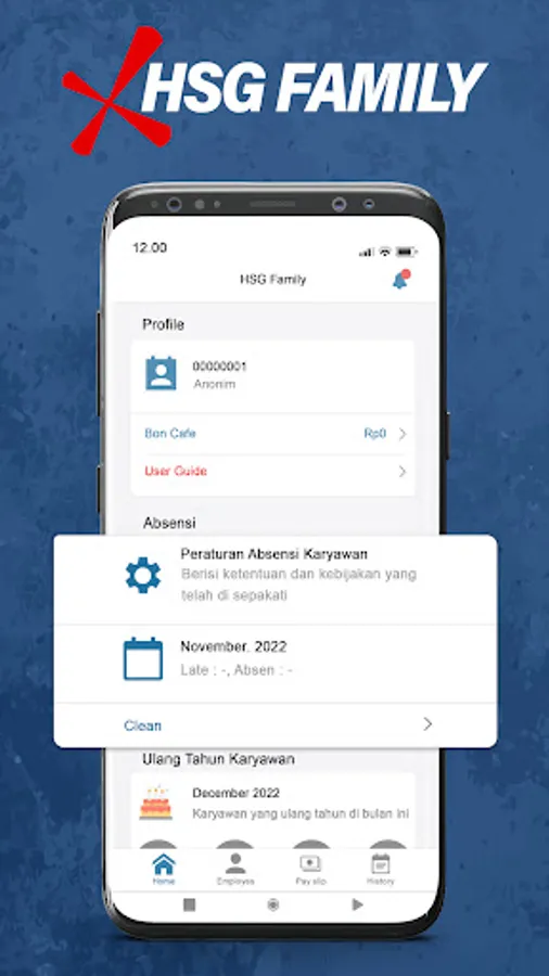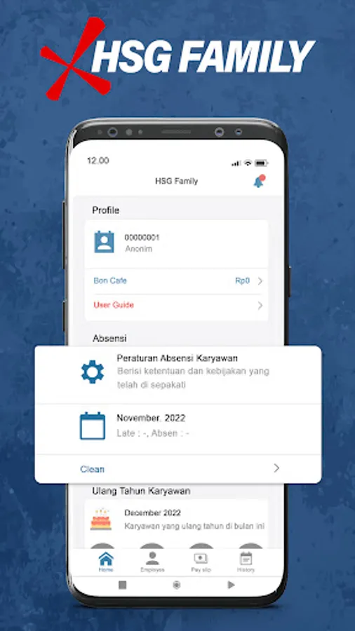 HSG family is a mobile-based employee app, for the purpose of using employees in monitoring attendance and cash funds for each employee