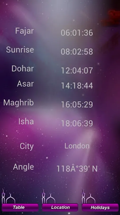 Our Prayer App gives you your precise location and delivers the right prayer times for each prayer: