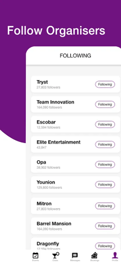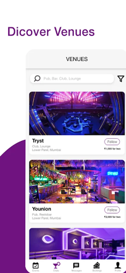 • Follow your favorite venues/ promoters and get notified every time they host an event.