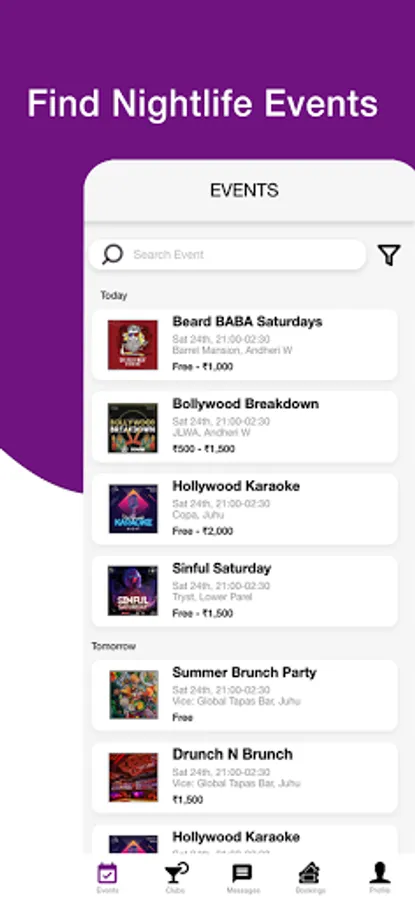 • Discover thousands of thrilling nightlife, music and cultural events in India. Sort your entry to Bollywood Night, Ladies Special, Karaoke Nights with a click of a button.