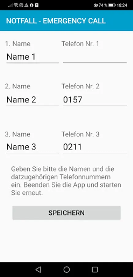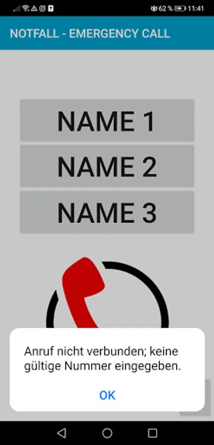 In an emergency, every second counts. That is why I developed the emergency app. Here you can save 3 names with associated phone numbers.