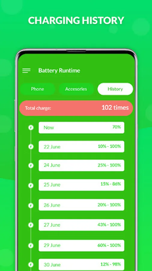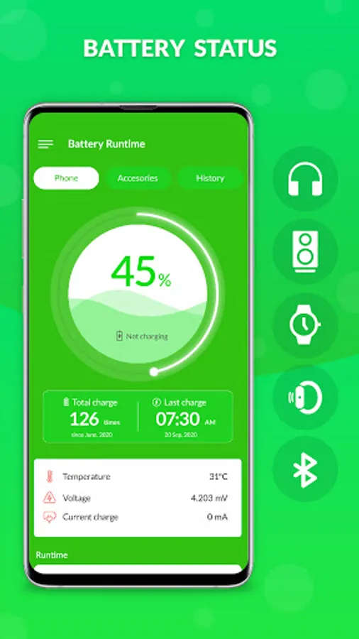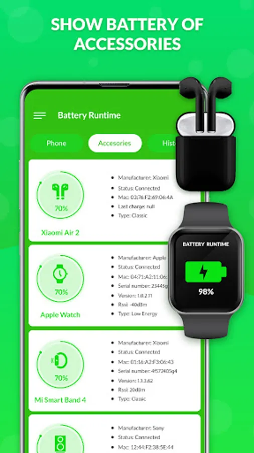 App provide details information of accessory: battery, last charge time, Bluetooth signal strength...