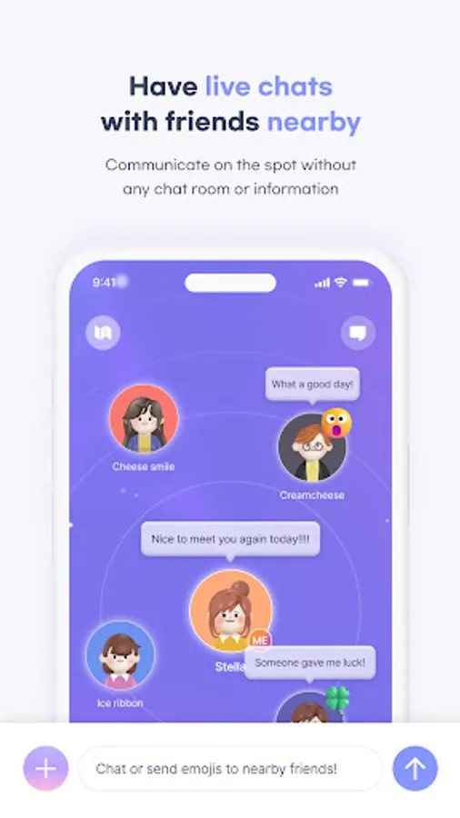 - You can easily talk to people around you on the spot without having to share your contacts.