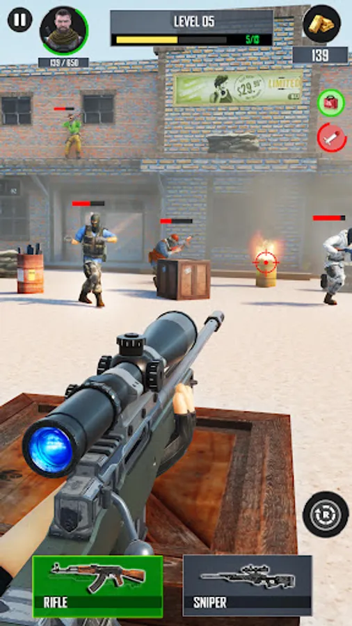 Try to beat the enemy early in a multiplayer fps offline shooting game.