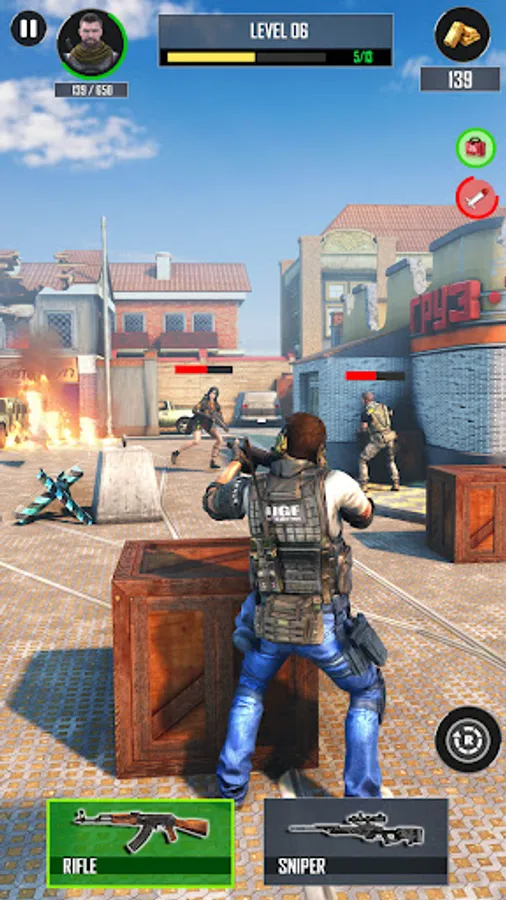 Here is the new challenging tps commando action shooting game 2022 for you. In this commando gun strike shooting game, you have to beat the enemy with a different strategy to win the fps gun shooting ops game offline. This fps gun strike game 3d is very easy to play yet challenging to win the level. You just have to move the crosshair with your finger to move the commando action gun strike ops shooting game offline and aim properly at the enemy to win gun special ops strike mission games. To win this commando action gun strike ops shooting game offline, try to beat your enemy through this method you will be able to beat them easily as compared to taking a shot somewhere. In commando action gun ops shooting games, you need to hide behind the boxes in order to save yourself from the firing and grenades in gun strike ops shooter games.