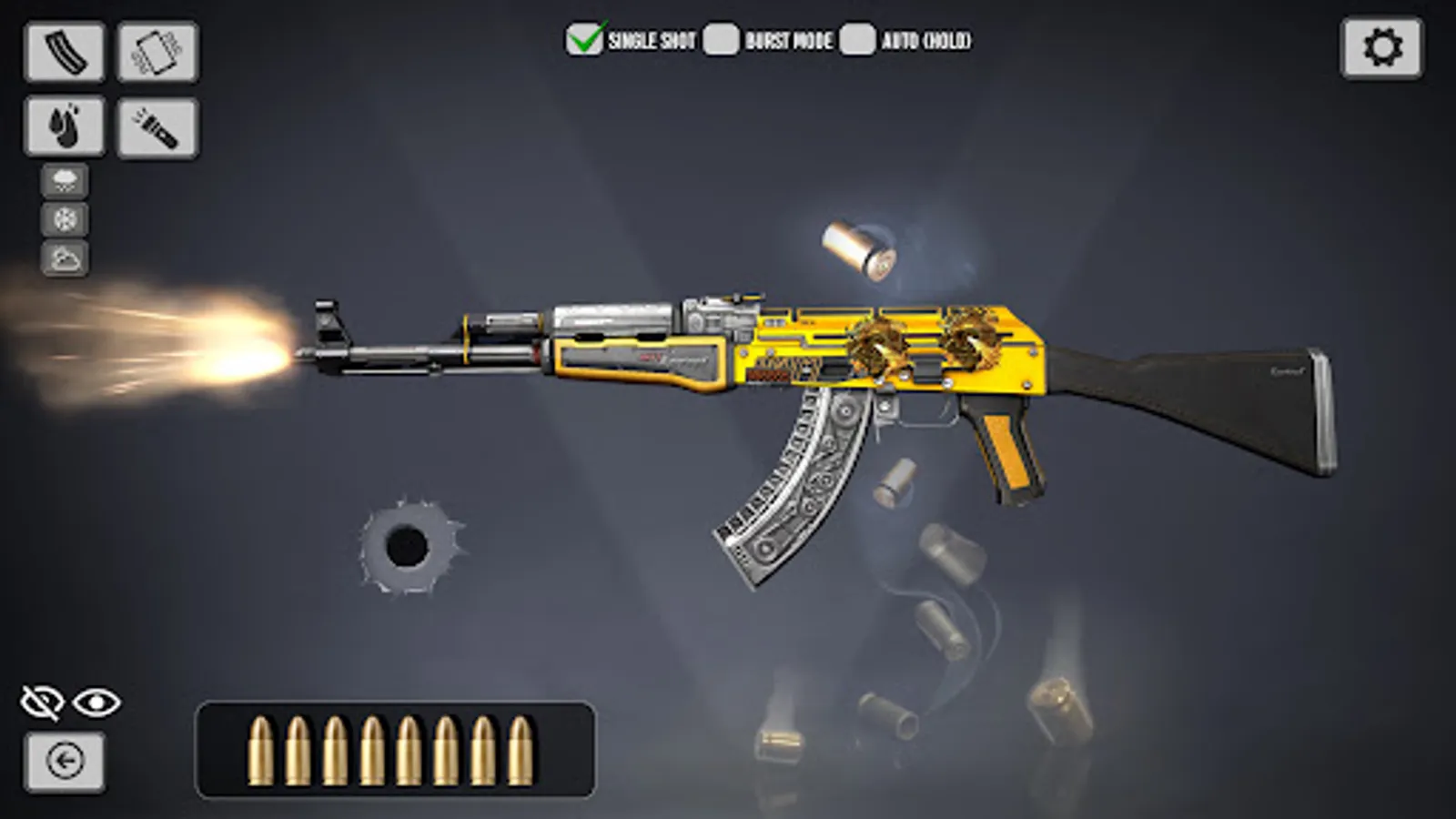 - Shake or tap to get gunfire sounds.