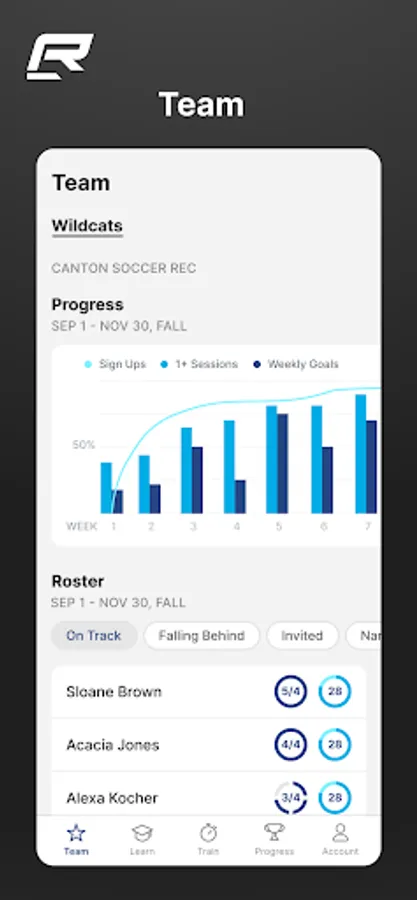 Progress and performance is transparent for athletes, coaches and athletic directors, leveraging positive team dynamics and encouraging training consistency.
