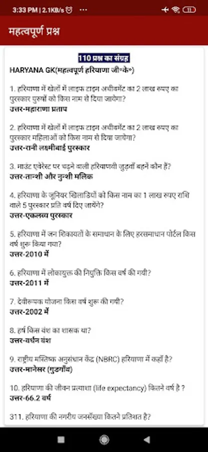 ★ Haryana CET app provides the study notes in Hindi languages and you can browse topic wise.