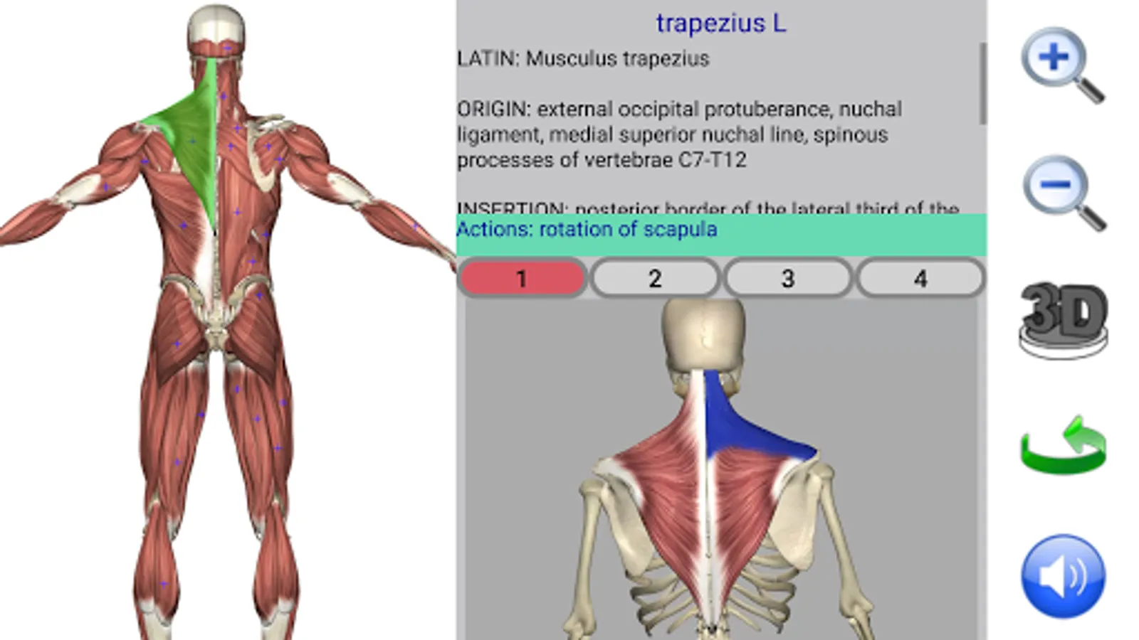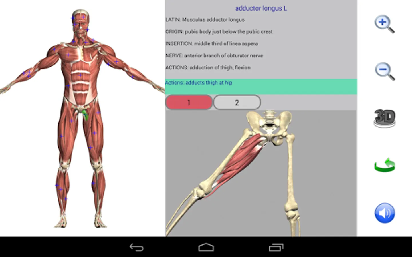 ★★Muscle in action! Now including muscle group action movies and 3D models and full description (ORIGIN, INSERTION, NERVE, ACTIONS). Audio pronunciation for all anatomy terms.