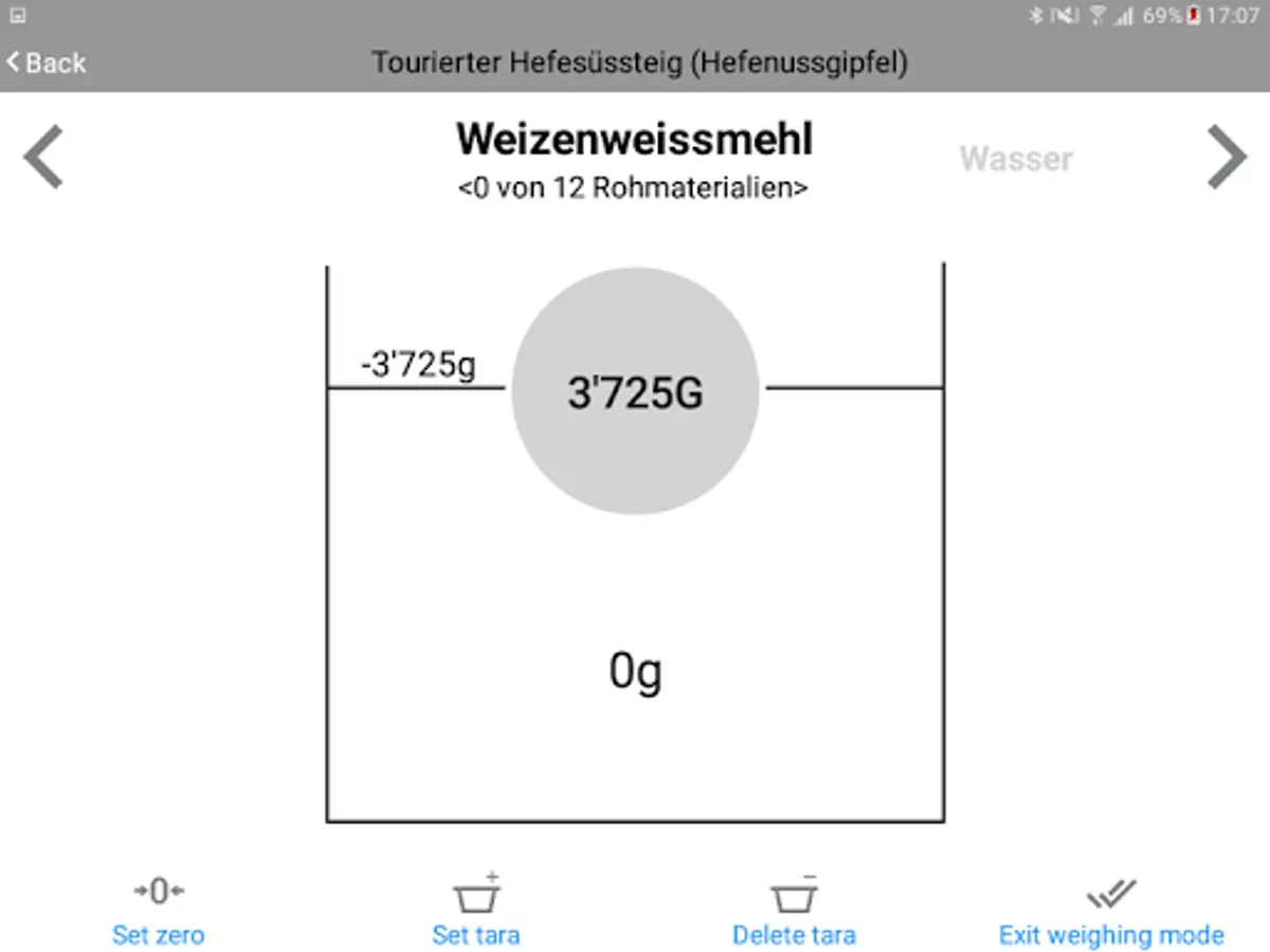 Modern bakery software system RezeptAssist represents SmartScale. Application with smart weighting function. SmartScale step by step leads you through the weighing process according to your recipes. The current recipe is displayed directly on a tablet which is connected to the scale. If the correct amount of the freshest ingredient is weighed in the range of tolerance, it automatically proceeds with the next ingredient of the recipe. Please note, that application works only in connection with RezeptAssist software, as a part of the biger software. To get the password you need to buy RezeptAssist software. More information you can find on hssoft.com