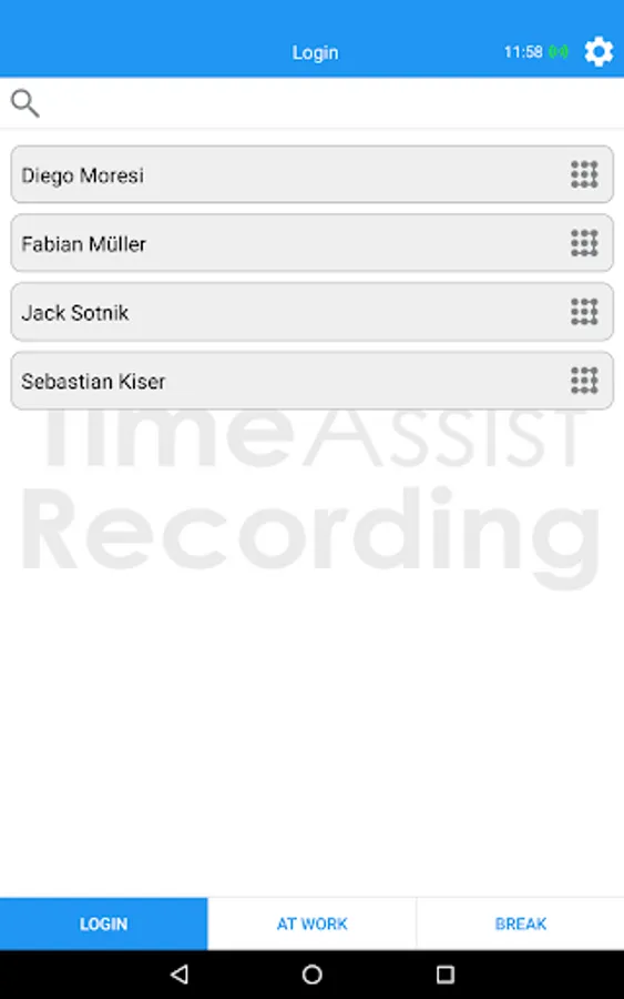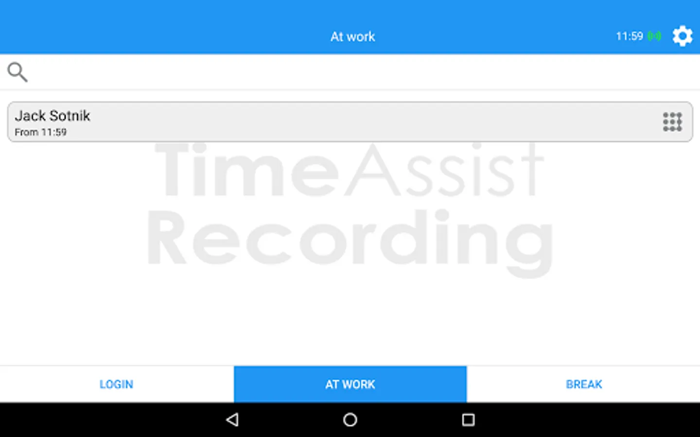 Record your working time with graphic key. TimeAssist Recording application turns your Android smartphone or tablet into a modern time recording device. Download the app and then connect tablet and office PC with a password. TimeAssist Recording is ready now!