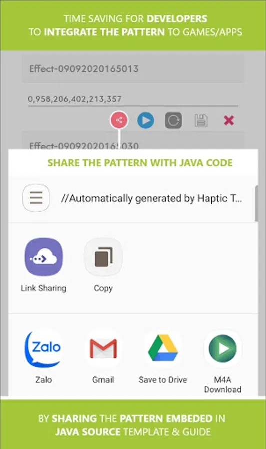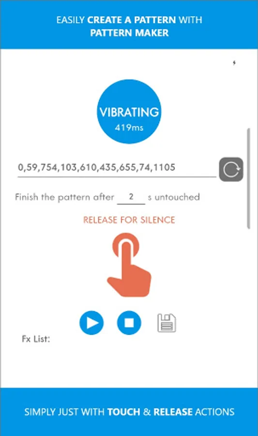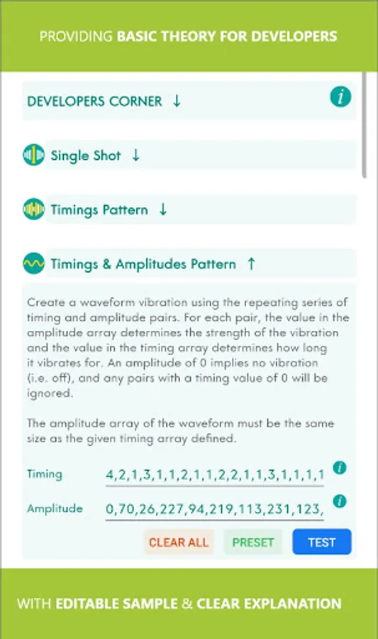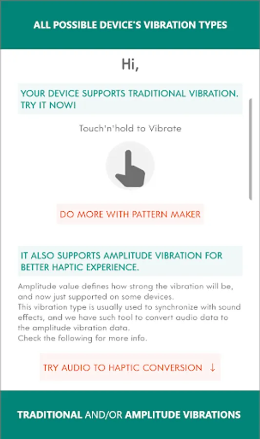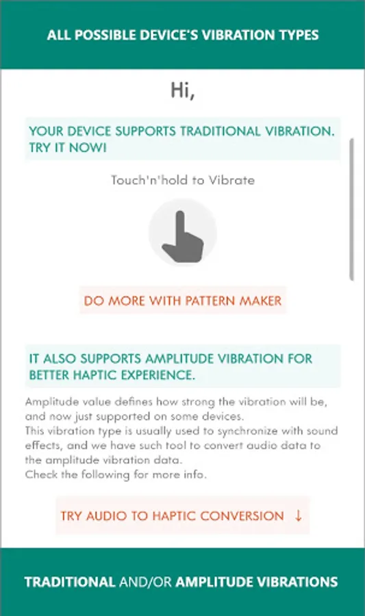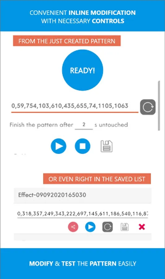 1. Pattern Maker: to create the traditional vibration pattern (based on timings with the same default highest amplitude). This is already available in our app.