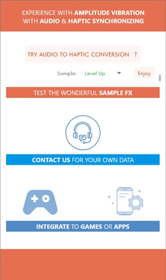 2. Audio-to-Vibration: to convert audio data into vibration data so that they can be well played together in games or apps.
