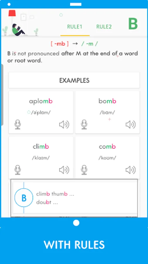 eSilence is a collection of silent letters and rules in English, with following functions: