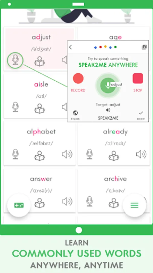 - Voices choice: Speak words with two options: real human voices and TextToSpeech (TTS) voices.