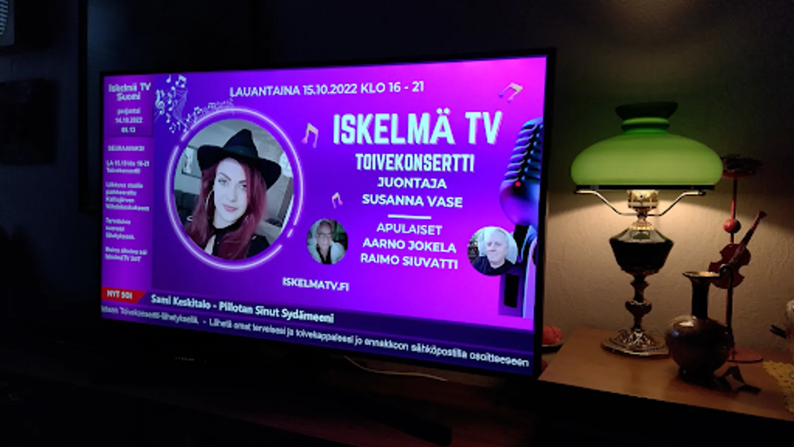 On the IskelmäTV Suomi channel, you can hear the best domestic Iskelmä and dance music around the clock, and you can also see live TV broadcasts from a mobile studio.