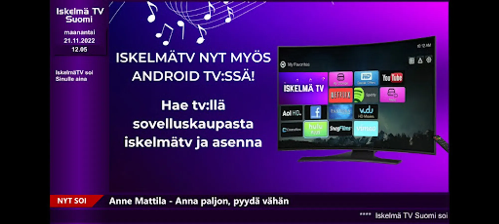 On the IskelmäTV Suomi channel, you can hear the best domestic Iskelmä and dance music around the clock, and you can also see live TV broadcasts from a mobile studio.