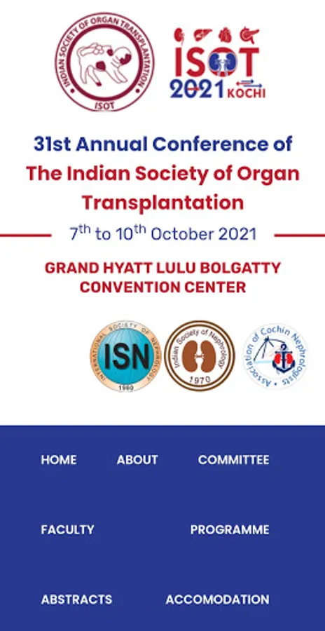 The mission of Indian society of Organ Transplantation (ISOT) is to provide National and global leadership in the practice of organ transplantation. ISOT is an Affiliated Society of The Transplantation Society. The responsibility of ISOT is to establish guidelines of clinical practice, advance programs of education, and to promote ethical standards for clinical care and scientific investigation.