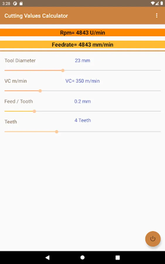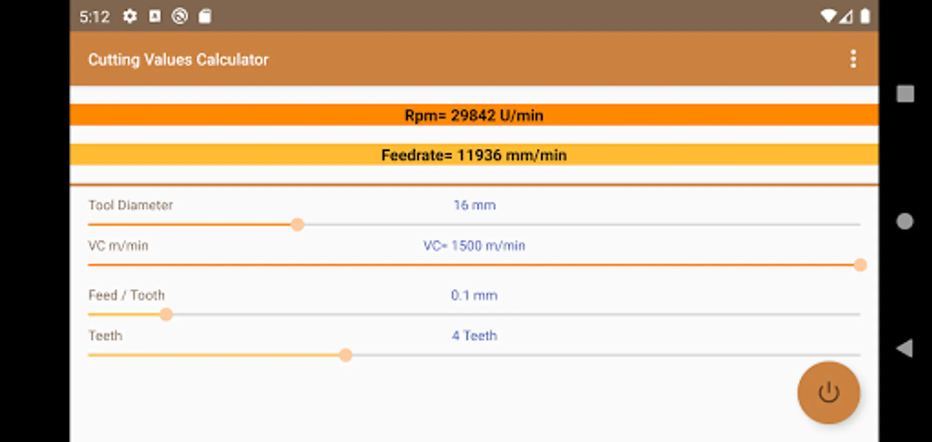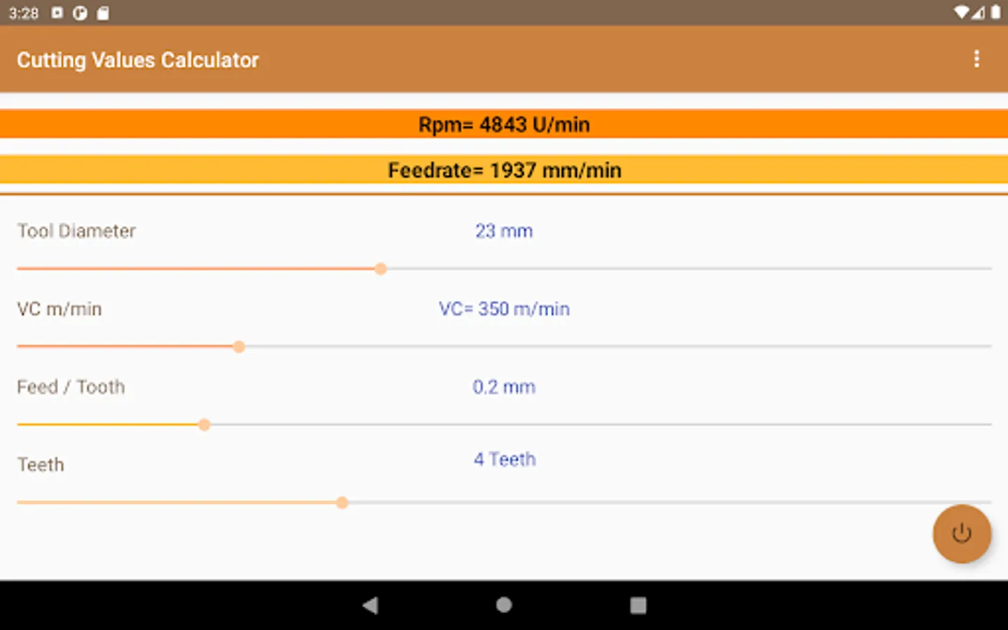 Small tool for calculating cutting values for CNC milling, drilling and turning.