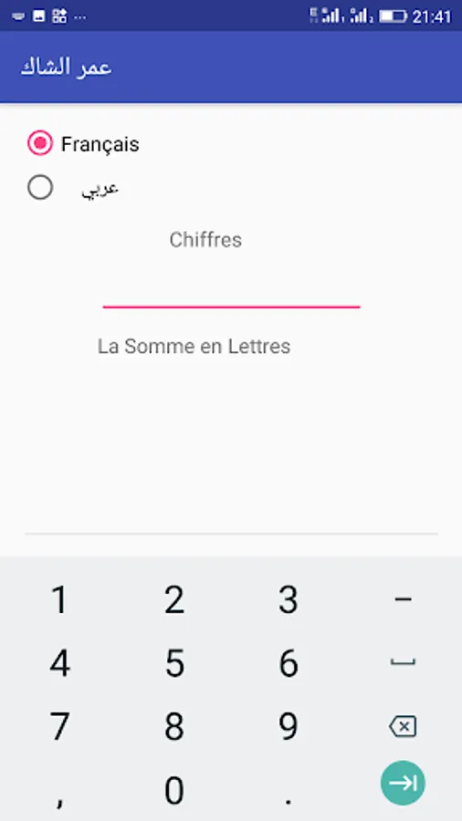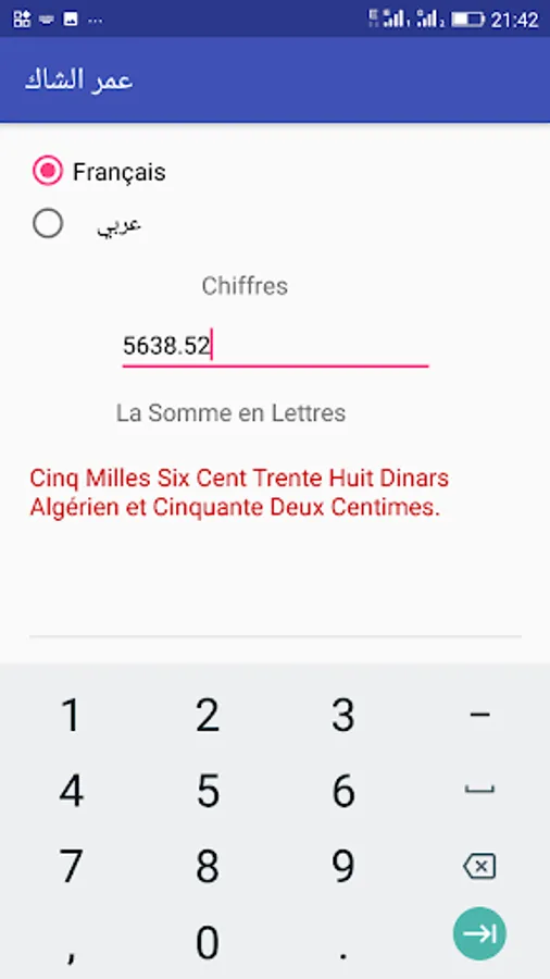 تطبيق ممتاز ، اكتب على الشيك بالأرقام و الأحرف, باللغتين العربية والفرنسية و بدون أخطاء ، بالإضافن أناليع أدية