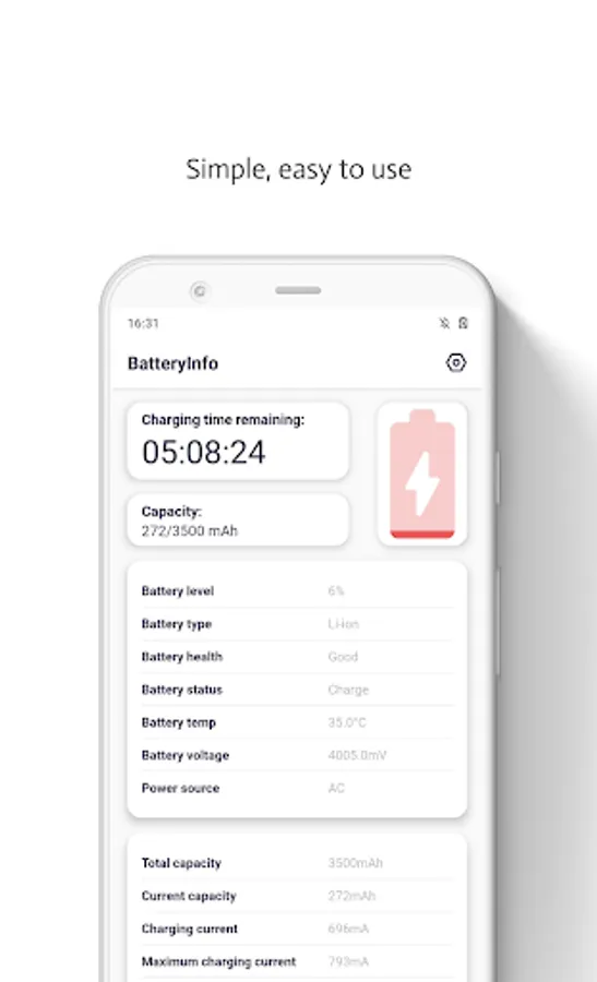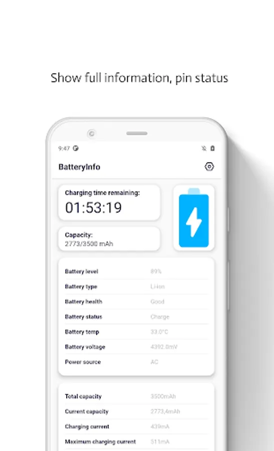 This app that gives you information of your battery's health state and more.
