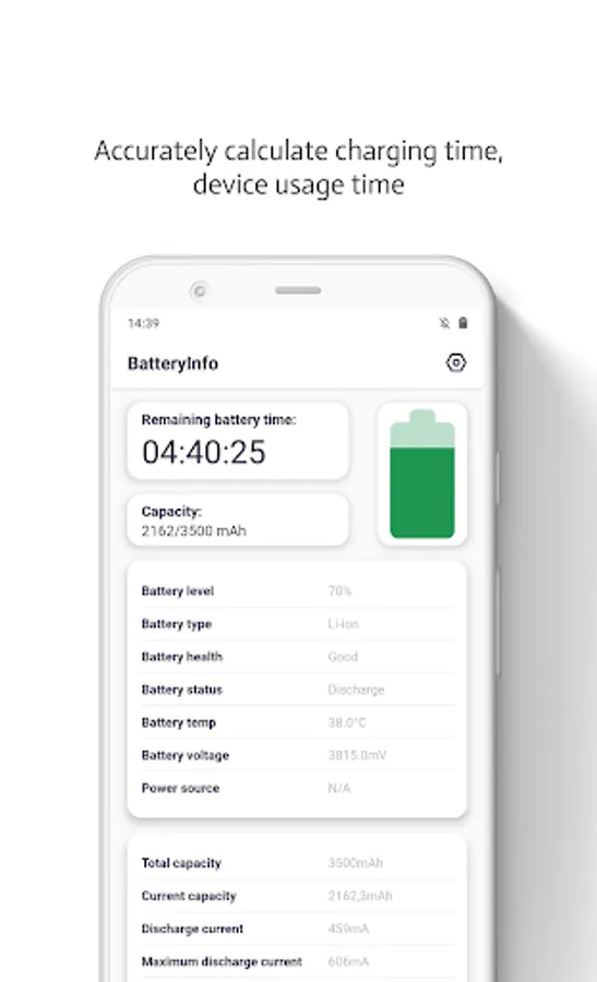 This app gives to the real capacity of the battery's current state of age to get the real capacity you must fully charge the battery and open app