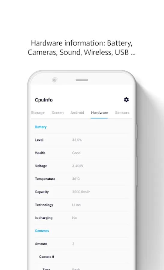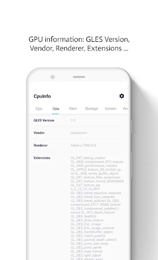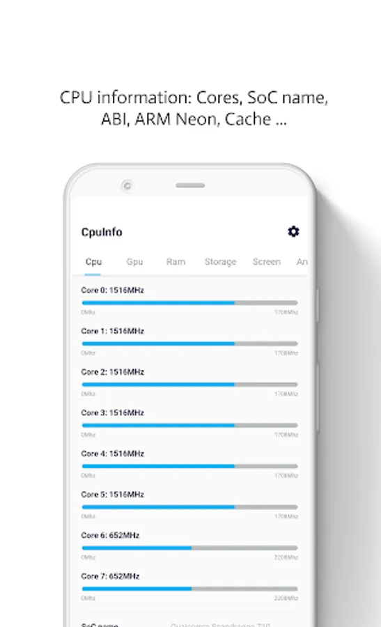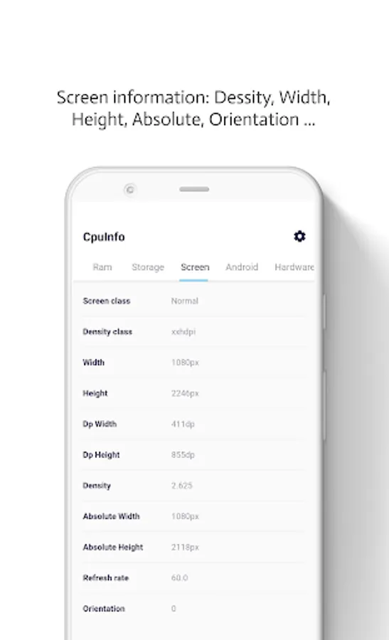 Check Cpu Info is packed with many features to give you all software and hardware information of your Android device like CPU, GPU, RAM, Storage, Screen, Hardware, Sensor ...