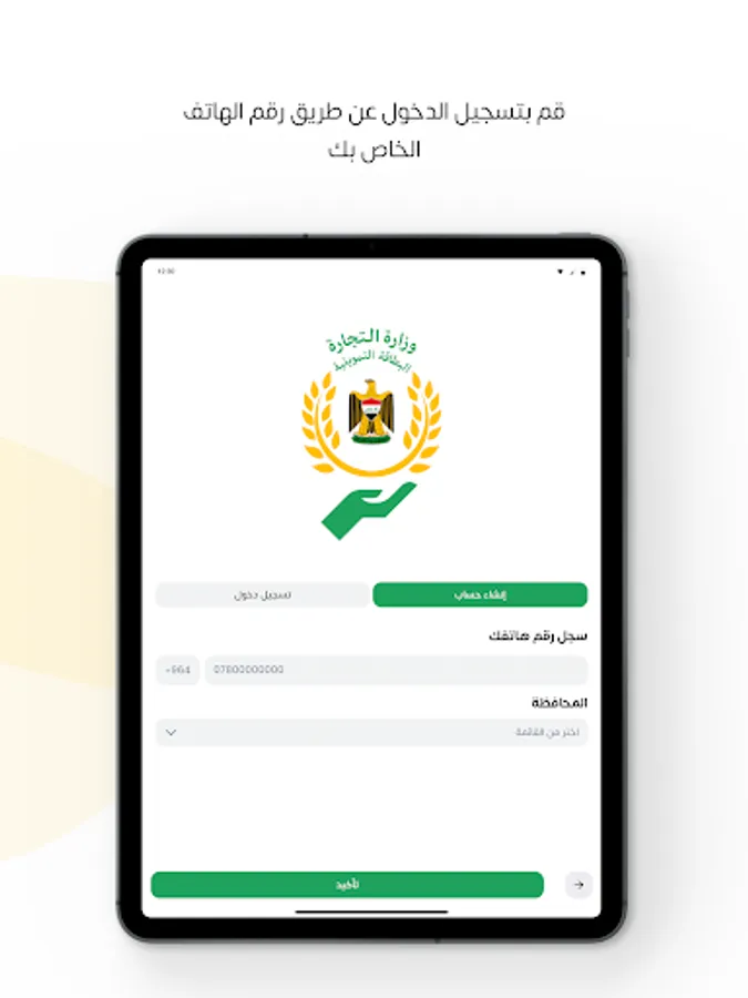 - Create your own account in the ration application, using the phone number and the governorate.
