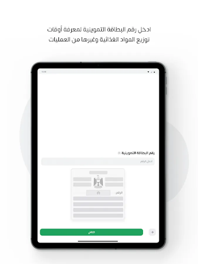 The application is responsible for applying for the electronic ration card. The application provides a practical and time-saving solution for each of the families benefiting from the ration card, replacing the old paper cards with a more advanced electronic application. The application allows citizens to update their information and data related to the ration card system easily and directly by using their smart phones.