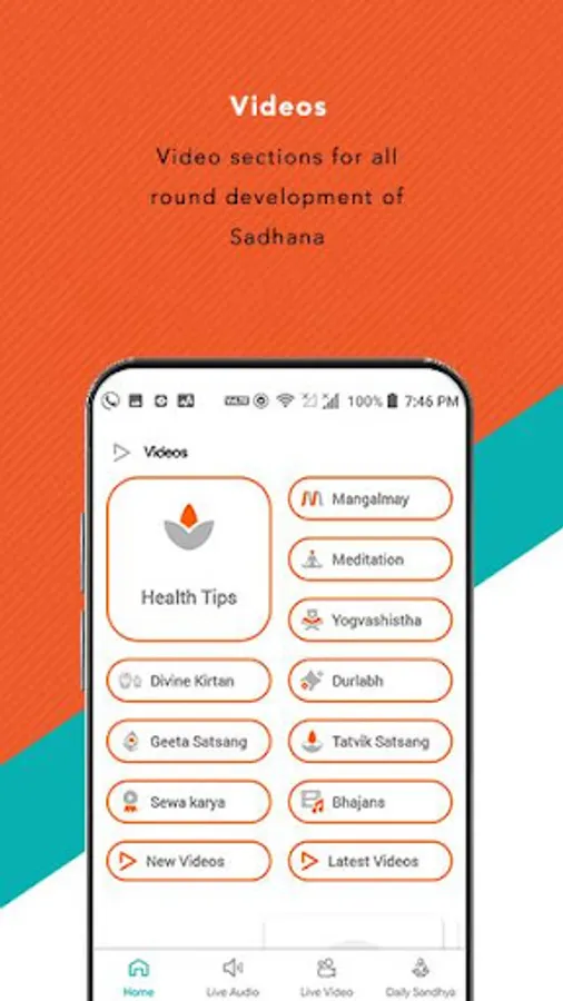 Watch LIVE video Satsang containing health tips, vedant satsang, tips for happy & dignified life, learn YOGA etc..