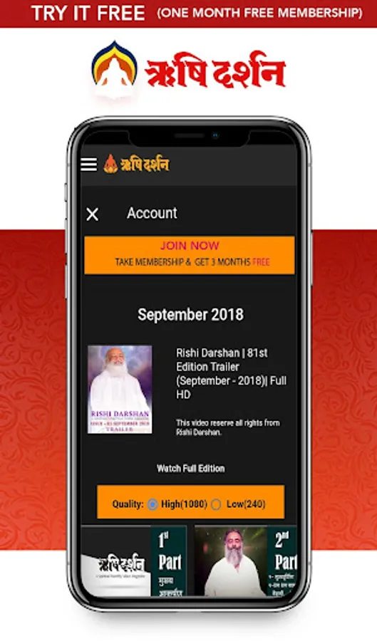If you have taken subscription of E-Rishi Darshan then you can login through app and watch/download your subscribed editions.