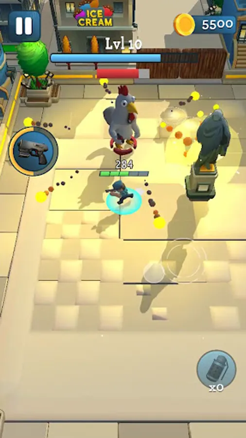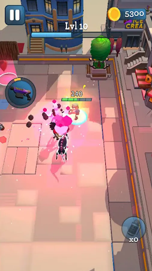 The cop is largely outnumbered by the enemies force as mafia keeps recruiting more and more new gangsters every day. To be able to stand a chance against large numbers of robbers, mobsters and mutated beasts you need to be smart and fast. Don't ever stand still in one place, always keep moving, take cover behind the street objects and wait for the right moment to counter attack your enemies. Only after the last bandit is down you may walk peaceful around and collect your reward.