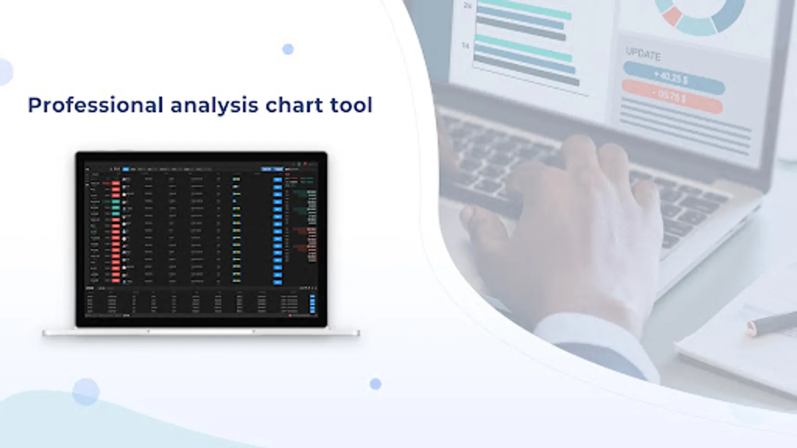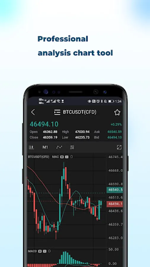 * 4 chart types: mountain chart, column chart, Japanese candlestick chart and line chart, for effective trading