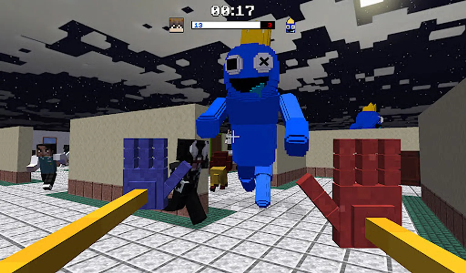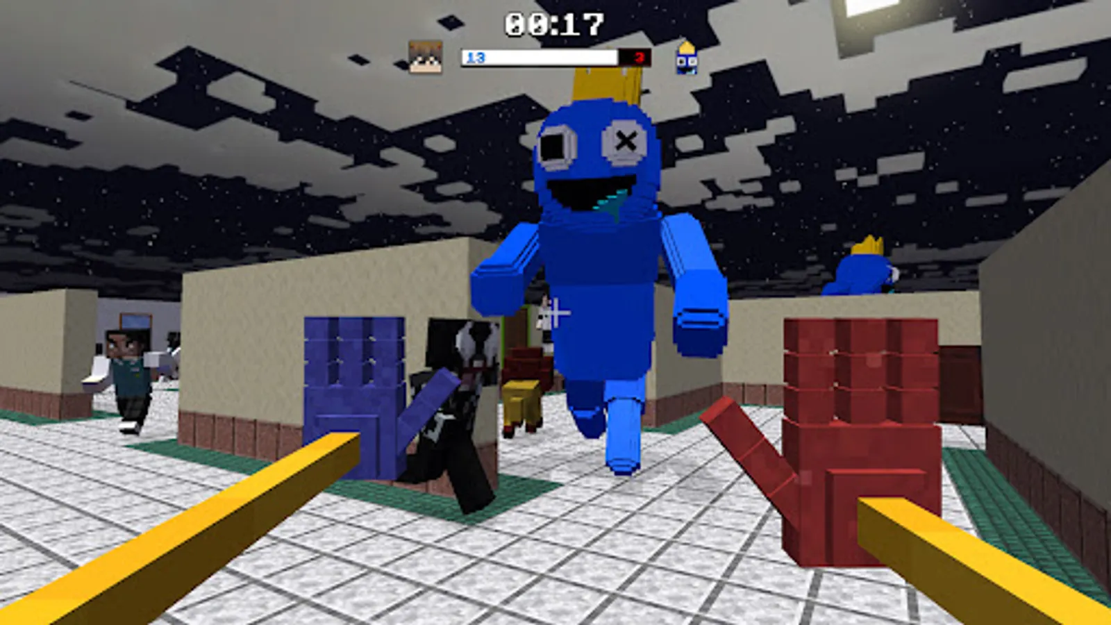 In Rainbow Craft: Hide and Seek , you can play the role of a seeker, striving to apprehend the unlucky victim, or you can hide and live in time-limited missions. Be cautious and avoid bumping with others or becoming trapped in a corner; Rainbow Friend will squeeze you to death in the difficulties