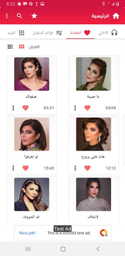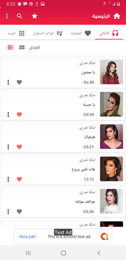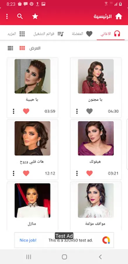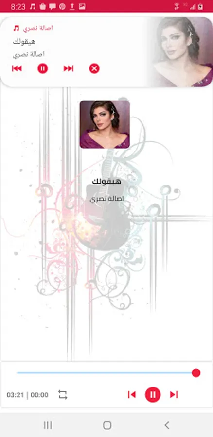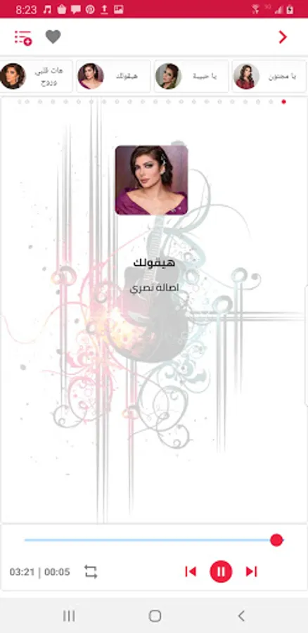 The application also contains a list of your favorite songs that you choose, and you can listen to the songs automatically one by one in the background for a group of Asala Nasri's wonderful and beautiful various songs that you can listen to at all times without the need for internet.
