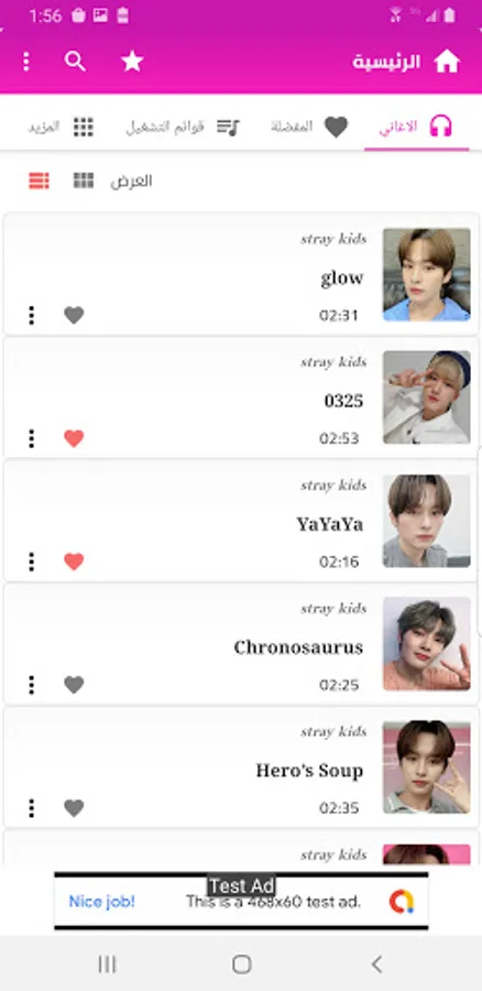 The application also contains a list of your favorite songs that you choose, and you can listen to the songs automatically one after the other in the background, and among the songs contained in the application is the song of victory for the Stray Kids band, the song The Way Was Not Taken, the song of fake love, the song of side effects, the song of embarrassing silence, the song A maze of memories and the song I It is you and many other wonderful and beautiful Korean songs that you can listen to at all times without the need for internet