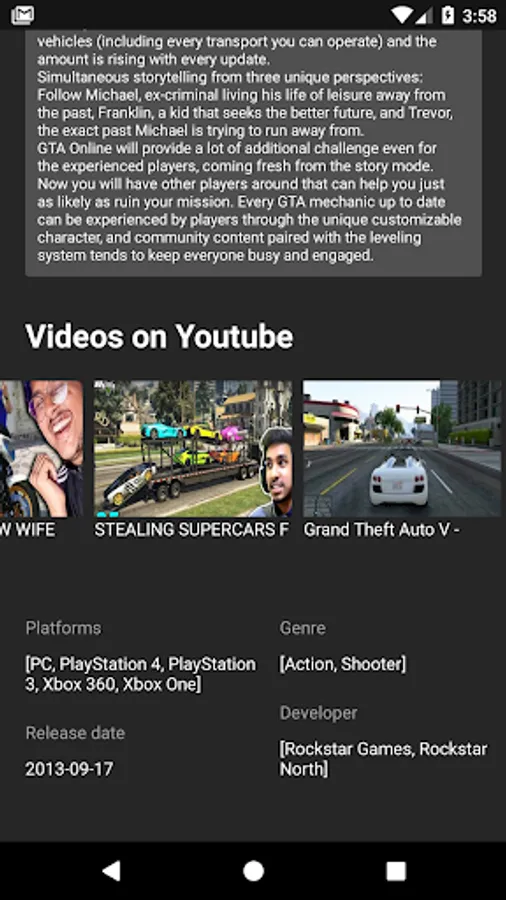 You can search for games via title search with or without platform. Or just request all games for a specific platform.