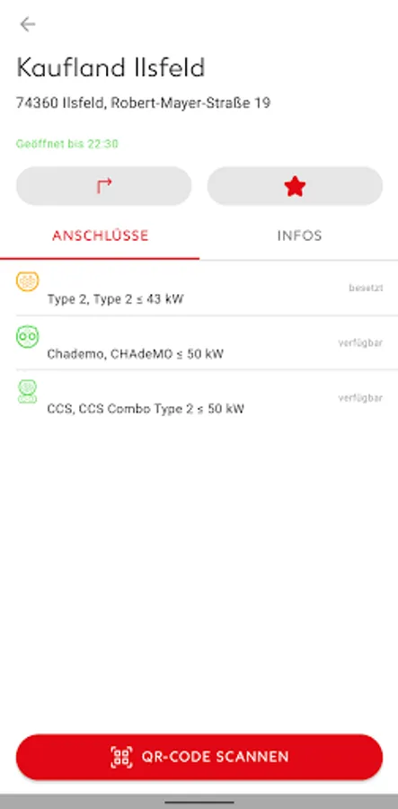 Scan the QR code on the charging station, plug the charging cable into your e-car and off you go. You can easily end the charging process via the app or on your vehicle. We wish you a good trip!