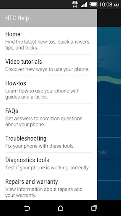 Learn how to use your phone and make sure it’s fully function with HTC Help’s wide range of handy tools. Explore our video tutorials, how-tos and FAQs to get information about everything your phone can do and find quick answers to common questions. Most minor issues with your phone can be fixed by the built-in troubleshooting tools.