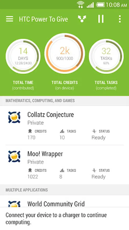 Download Power To Give, plug in your phone and connect to Wi-Fi or mobile data. Your spare computing power will become part of an enormous grid, providing processing power to a project you’ve selected from a range across the world.