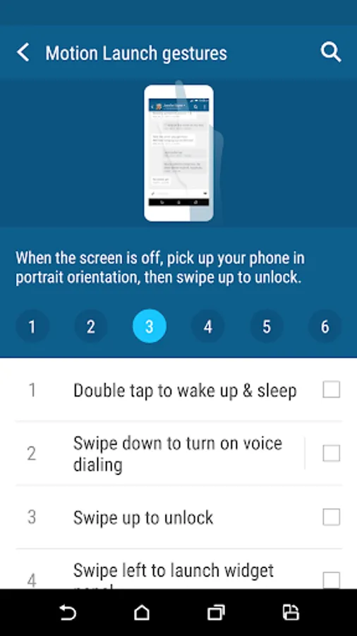 HTC Motion Launch lets you interact with your phone while the display is still off. Turn on these gestures in Settings and try them for yourself: