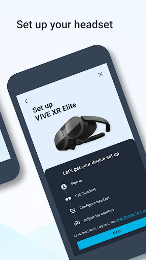 • Quickly set up your VIVE XR Elite, VIVE Focus 3 out of the box. Set up Wi-Fi, choose the language to use, sign in to your account, and more.