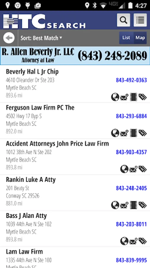 HTC offers speech recognition to make finding a listing fast and easy. Entering a simple search term like “Plumbing Contractors” using the standard iPhone® touch interface can take well over 15 keystrokes. With speech recognition, you can simply push a button and speak your search query – thus greatly reducing the number of steps required to find a local business.