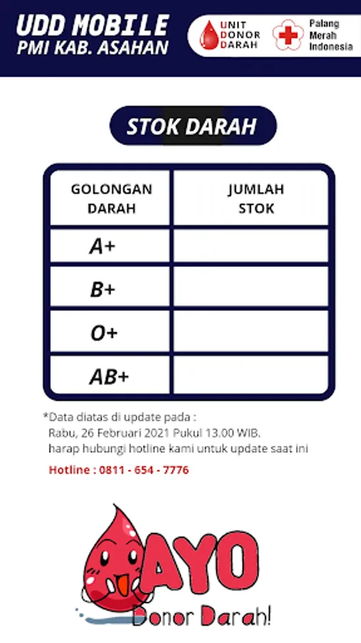 Information system created to check the blood stock at the PMI office of Asahan Regency