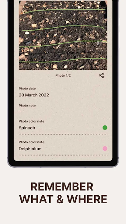 Annotate your own photos to remember where you plant your bulbs or to mark what weed to rake. Draw on the photos with the built-in drawing tool.