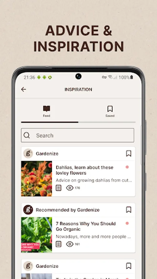 Use the inspiration feed to get gardening inspiration & all the answers you are looking for. Search & save posts you like, so you easily find them again. Get inspired by fellow gardeners & check out their gardens!